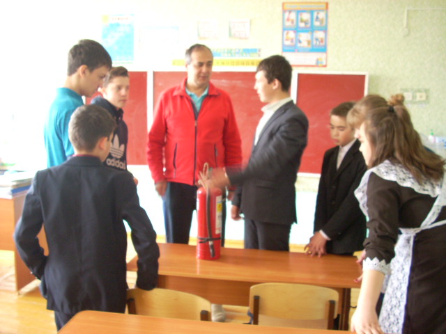 19 апреля 2018 года в нашей школе состоялся тематический урок «Пожарная безопасность в школе и дома». Основной целью занятия стало знакомство детей с правилами пожаробезопасного поведения в школе и дома. Учитель ОБЖ Ахметзянов И.Б. рассказал школьникам об основных причинах возникновения пожаров, о правилах использования электроприборов и напомнил телефоны экстренных служб. Также продемонстрировал как пользоваться огнетушителем.