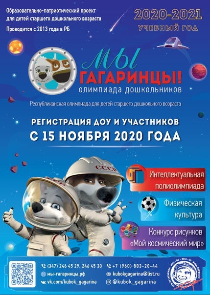 15 ноября начинается регистрация ДОУ и участников Республиканской олимпиады для детей старшего дошкольного возраста «Мы гагаринцы!»